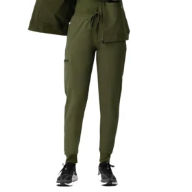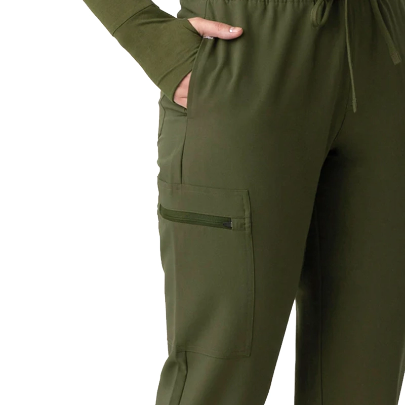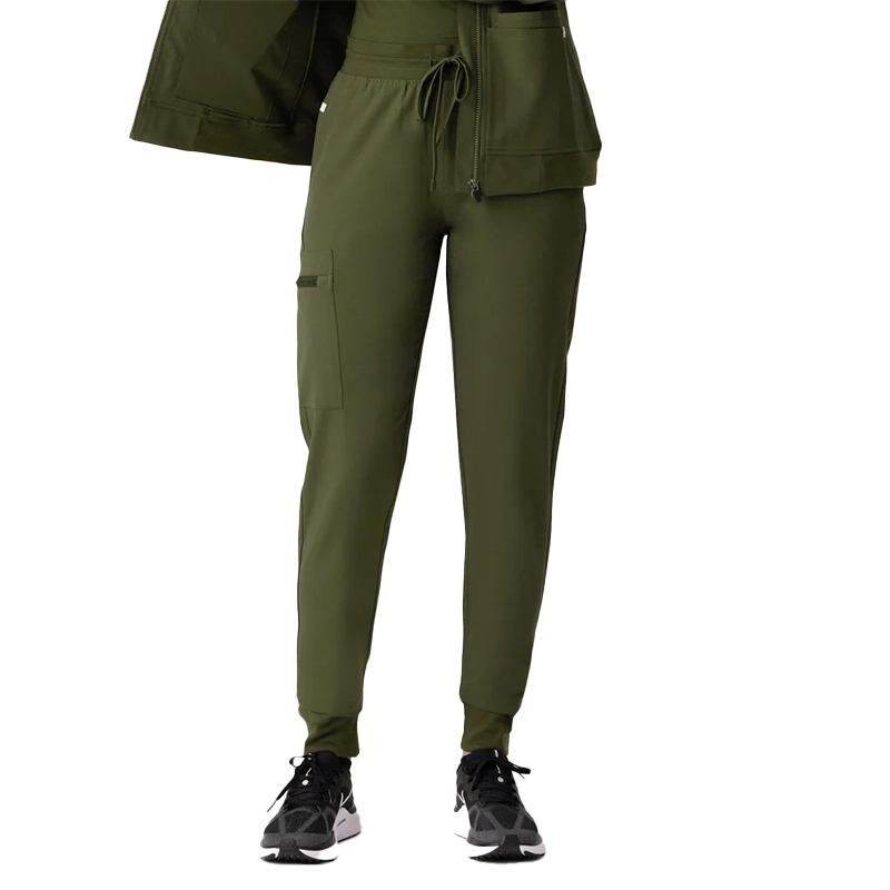 Diseño de ajuste cómodo con cintura alta elástica y cordón ajustable, ideal para largas jornadas. Suaves puños de canalé brindan un ajuste flexible y seguro.
