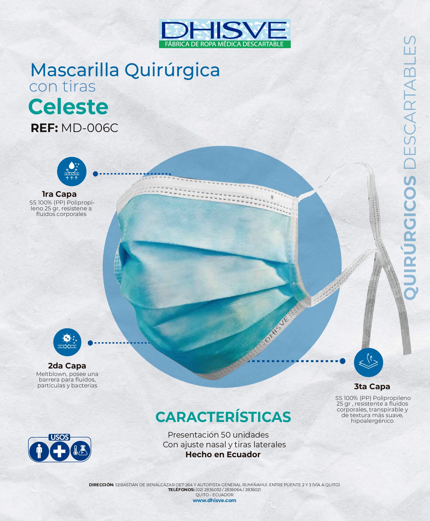 MASCARILLA QUIRÚRGICA CELESTE CON TIRAS, CAJA X 50 UNIDADES