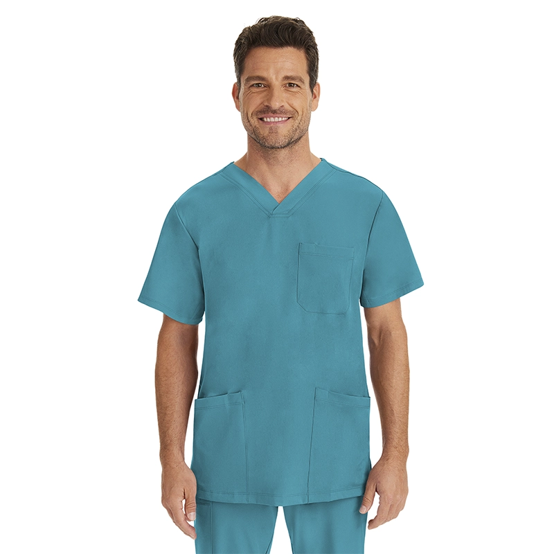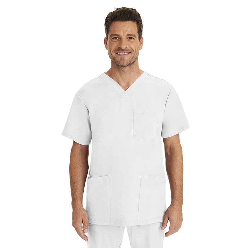 Fabricado con 91% poliéster y 9% spandex, un tejido transpirable, de secado rápido y fácil cuidado, con elasticidad 360° y absorción de humedad, ideal para largas jornadas.