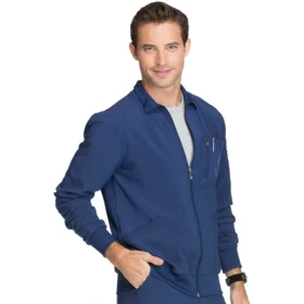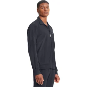 Diseño moderno con cierre frontal, paneles laterales en la espalda y tejido de punto acanalado en cuello, puños y cintura para mayor flexibilidad y confort.